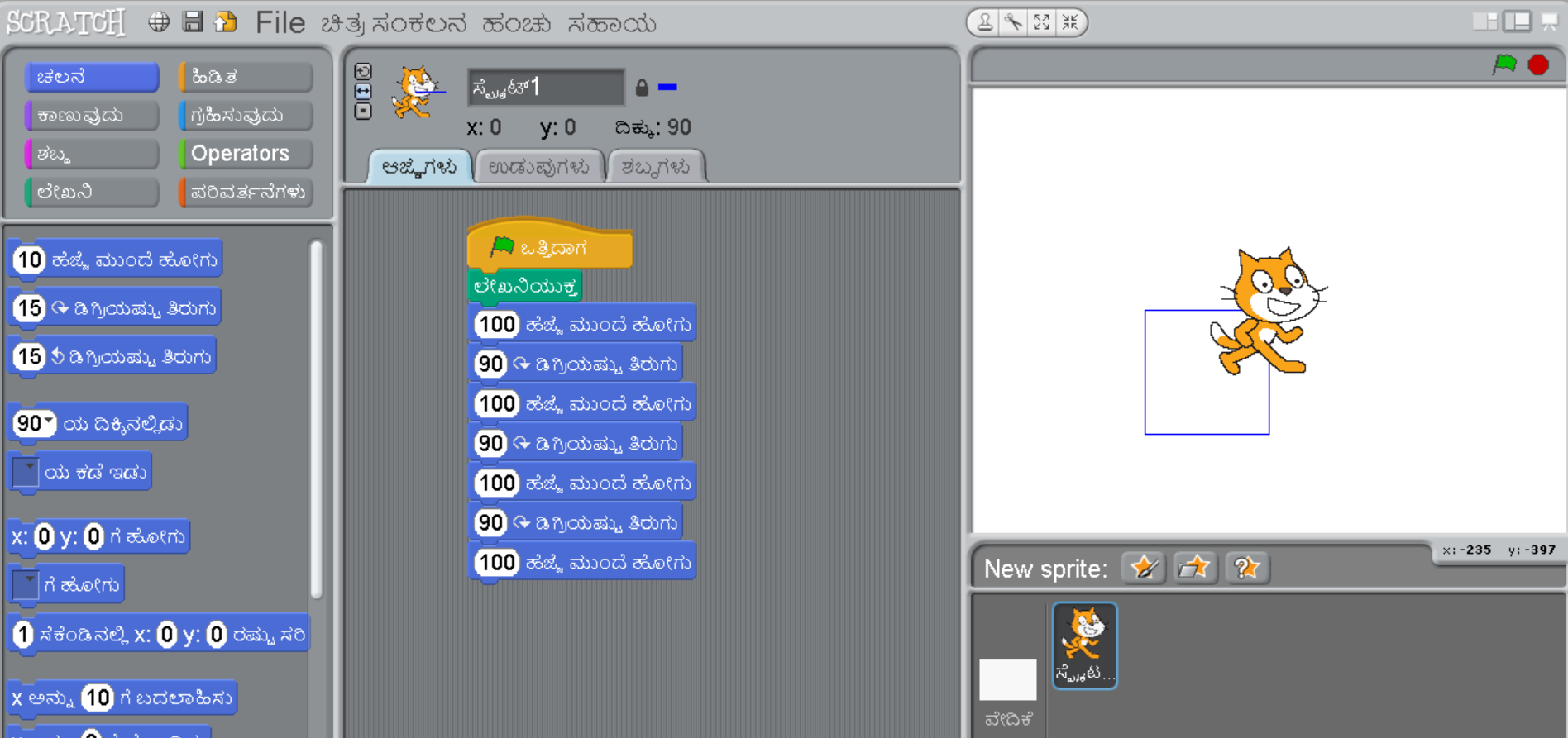 - Basic programming concepts like sequences, loops, and conditionals through visual blocks in Kannada